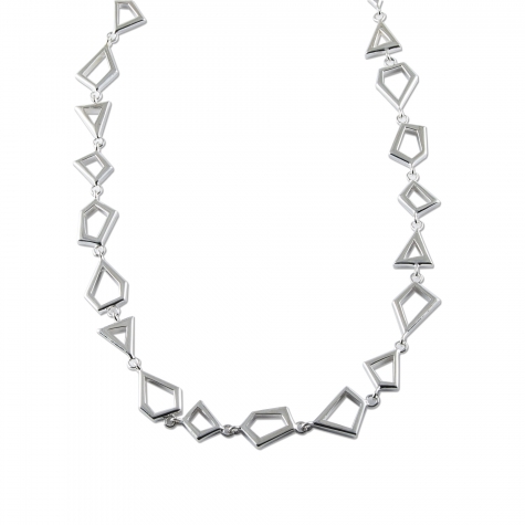Sterling silver irregular shapes link necklace. 17″