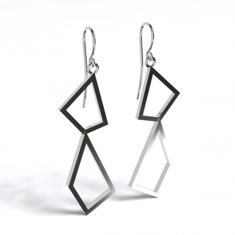 Clean modern lines and full of whimsey! These open, airy earrings are such a fun change from hoops… treat yourself! Sterling Silver with a hook wire top for pierced ears. At it’s widest just under 0.75″ and about2.5″ long.